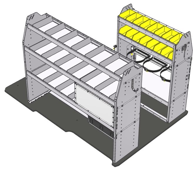 Profiled back refrigerant bin unit 34.5"Wide x 13.5"Deep x 48"High with 2 shelves |