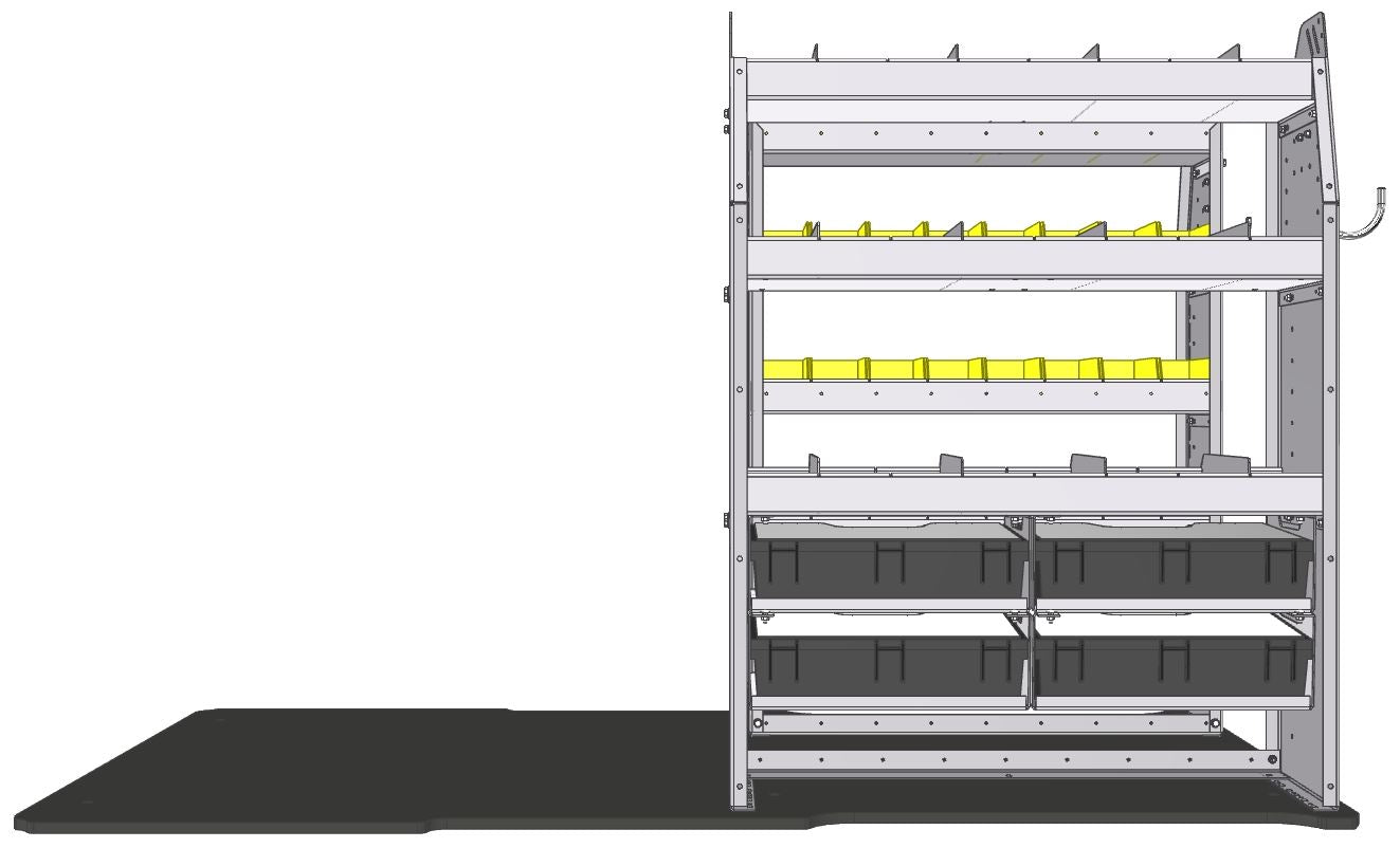 • 1X 23-3348-4 Profiled back bin shelf unit 34.5"Wide x 13.5"Deep x 48"High with 4 shelves